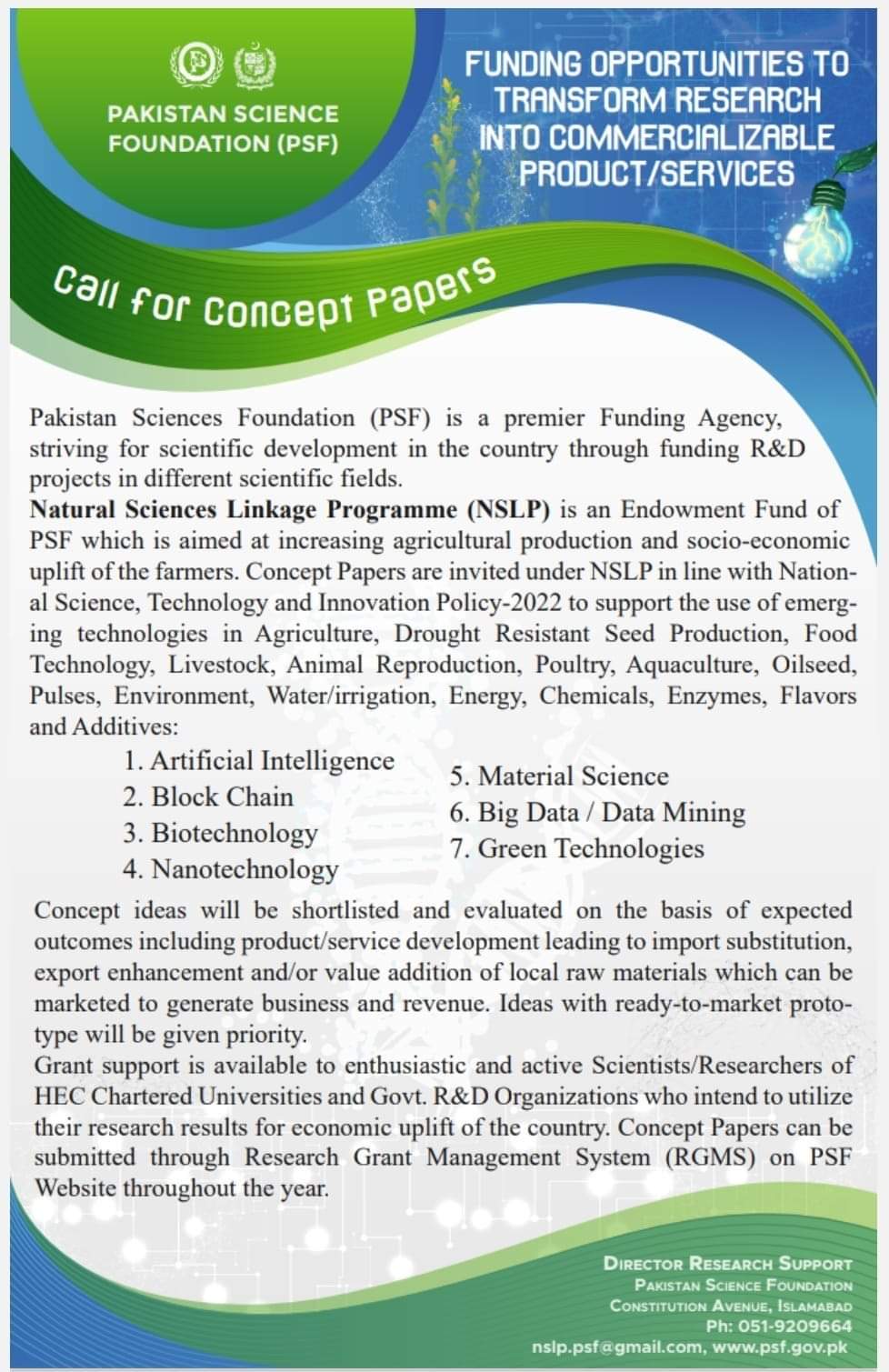 Explore the Possibilities: Research Funding Opportunity through the Prestigious Pakistan Science Foundation - Natural Sciences Linkage Programme (NSLP) Grant ...Read more
