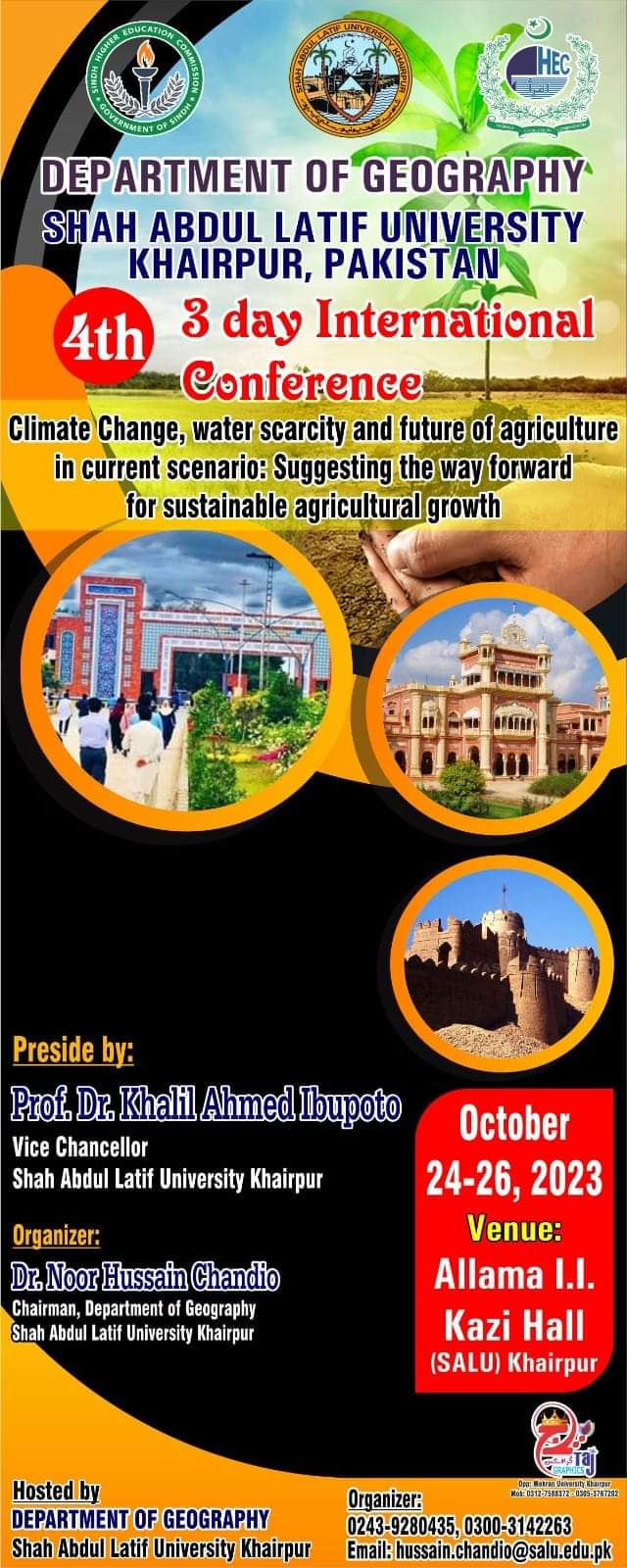 3 day International Conference at Shah Abdul Latif University Khairpur at Deparment of Geography October 24-26, 2023 ...Read more